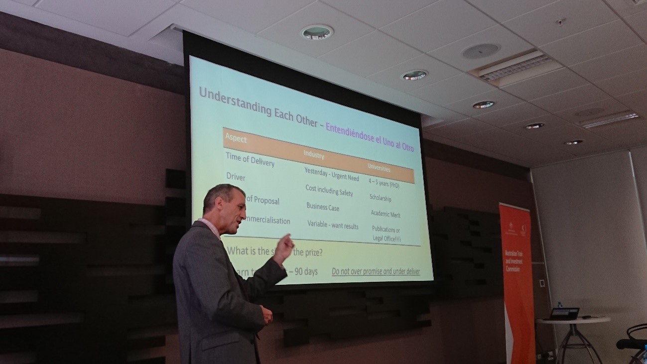 Administración y Negocios Digitales Administración y Negocios Sostenibles Business AnalyticsEn la sede de la Embajada de Australia, y organizada por Australian Trade and Investment Commission, se impartió la conferencia “The Universities and the Development of Applied Research Projects for the Mining Industry” a cargo del Profesor Steve Hall, Decano de la Facultad de Ingeniería de Minas de la Universidad de Curtin y Director Ejecutivo de Mining Education Australia (MEA por sus siglas en inglés).