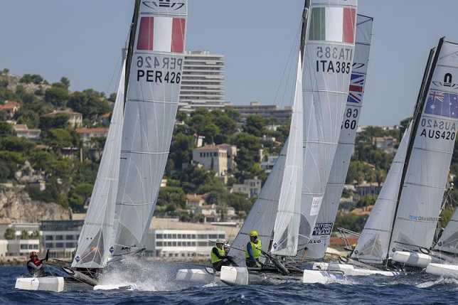 Este bote es un catamarán. Son botes muy modernos y se navegan de manera muy diferente a los monocascos tradicionales a los que yo estaba acostumbrado; por lo que la transición de una clase a otra fue dura.