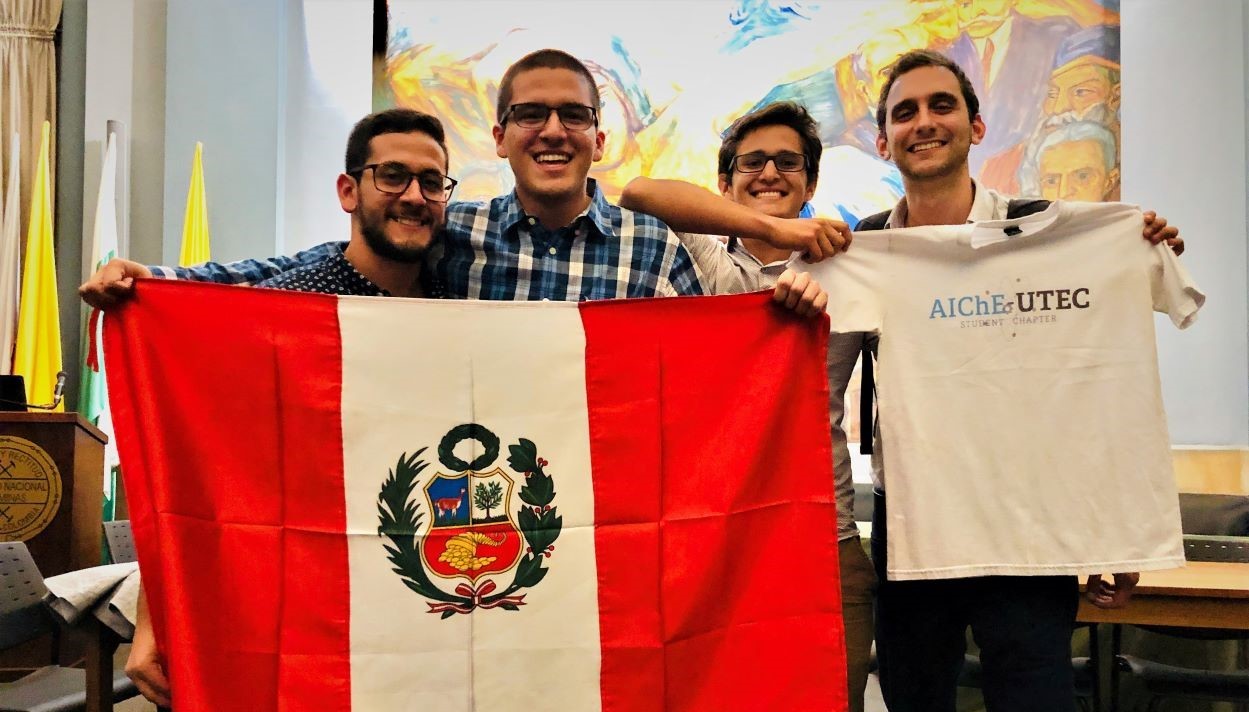 Alumnos ganadores que representaron al capítulo estudiantil AIChE-UTEC en Medellin, Colombia.