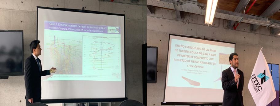 Administración y Negocios Digitales Administración y Negocios Sostenibles Business AnalyticsFelicitamos a Luis Antonio Sánchez Sarmiento y Diego Armando Jesús Peña Vicente por haber sustentado de manera satisfactoria sus tesis para la obtención del título profesional de Ingeniero Mecánico. Luis presentó el tema: “Mejora a la Metodología de Dimensionamiento de Redes de Suministro de Aire Comprimido en Operaciones Mineras en Gran Altitud” y, Diego: “Diseño Estructural de un Álabe de Turbina Eólica de 5 KW a base de Material Compuesto con Refuerzo de Fibras Naturales de Stipa Obtusa”