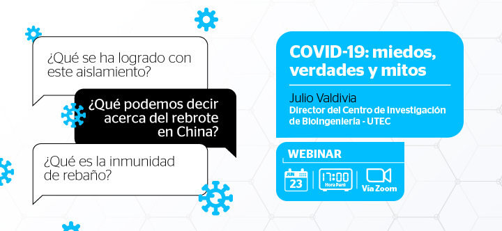 Día a día escuchamos y leemos mucha información en distintos canales, pero ¿todas las cosas que se dicen son verdad? ¿qué es lo que se viene para nosotros? ¿cuál debería ser nuestro comportamiento?. En vista de esta gran incertidumbre, UTEC organiza el webinar ‘COVID-19: miedos, verdades y mitos’, próximo a realizarse el 23 de junio, fecha en la que cumplimos 100 días de cuarentena en el Perú.