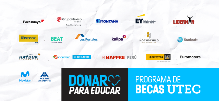 Entre las empresas que han hecho esto posible -y están demostrado su compromiso con la educación del país- se encuentran: Pacasmayo, Ares- Hoch, Southern, Aceros Arequipa, Kallpa, Ferreyros, J&V Resguardo, Movistar, Hayduk, Los Portales, EY, Montana, Statkraft Perú, Euromotors, Precor SA, BEAT, Prodac y Mapfre. También han sido donantes personas naturales como Ramón Barua Costa, Carlos Zuzunaga Vargas, Benjamin Edwards y Rafael Benavides. Les agradecemos por apostar por el talento peruano, jóvenes que tienen sueños y mucho potencial para generar soluciones para resolver los desafíos complejos de nuestra sociedad y, desde UTEC hacemos un llamado a todas las empresas y organizaciones que quieran formar parte de este programa e invertir así en el futuro del Perú. Gracias al apoyo y solidaridad del sector privado, más jóvenes talentos peruanos podrán cumplir sus sueños, desarrollar sus capacidades y ponerse al servicio del país.