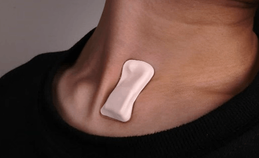 El dispositivo tiene un tamaño muy pequeño y carece de cables y conexiones, además está fabricado con silicona suave para facilitar su uso. El dispositivo debe ser colocado en la base de la garganta para que pueda funcionar correctamente, ya que desde esa posición el dispositivo es capaz de realizar monitoreo en tiempo real de diferentes síntomas como: Respiración, tos, frecuencia cardíaca y temperatura corporal. Los datos son almacenados en formato digital y son dispuestos a algoritmos basados en IA para identificar si se trata de COVID-19. El dispositivo cuenta con una carga inalámbrica, el cual deberá ser cargado al final de cada día. Las ventajas que ofrece el dispositivo es que puedes realizar diferentes actividades sin ningún problema como ducharse y desinfectarlo con facilidad.
