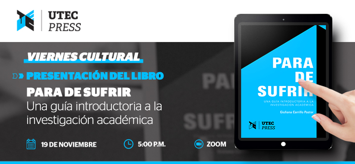 La Dirección de Humanidades, Artes y Ciencias Sociales y UTEC Press presentan el libro "Para de sufrir. Una guía introductoria a la investigación", escrito por Giuliana Carrillo, docente de UTEC.