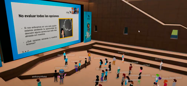 El evento “Metaverso UTEC: Explora, interactúa y define tu futuro” se realizó el 17 de noviembre en tres plantas de un edificio virtual de Decentraland. A través de sus propios avatares, los escolares participaron en una charla sobre carreras STEM, con testimonios de alumnos y egresados de UTEC y expertos en el campo, y en otra sobre el potencial de la realidad virtual, el metaverso, el blockchain y otras tecnologías similares.