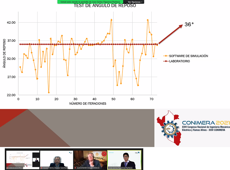 Nuestra institución, La Universidad de Ingeniería y Tecnología (UTEC) se hizo presente en el eje temático número 2, bajo la experiencia del Ing. Helard. H. Alvarez Sanchez y el egresado José C. Figueroa Pacheco se logró mostrar las ventajas de predecir el comportamiento del mineral de hierro en una torre de transferencia haciendo uso del metodo numerico DEM (Metodo de los elementos doscretos)