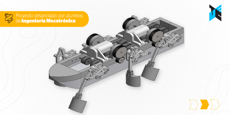 El trabajo trata sobre el mecanismo de un robot anfibio de seis patas, con la capacidad de desplazarse en superficies terrestres y acuáticas. Incluye desde el análisis y el diseño de la estructura hasta la construcción del prototipo en los laboratorios de la universidad. Ambos estudiantes destacaron el apoyo que tuvieron por parte de la carrera de Ingeniería Mecatrónica y del profesor Elvis Jara, quien los asesoró durante el desarrollo del proyecto.