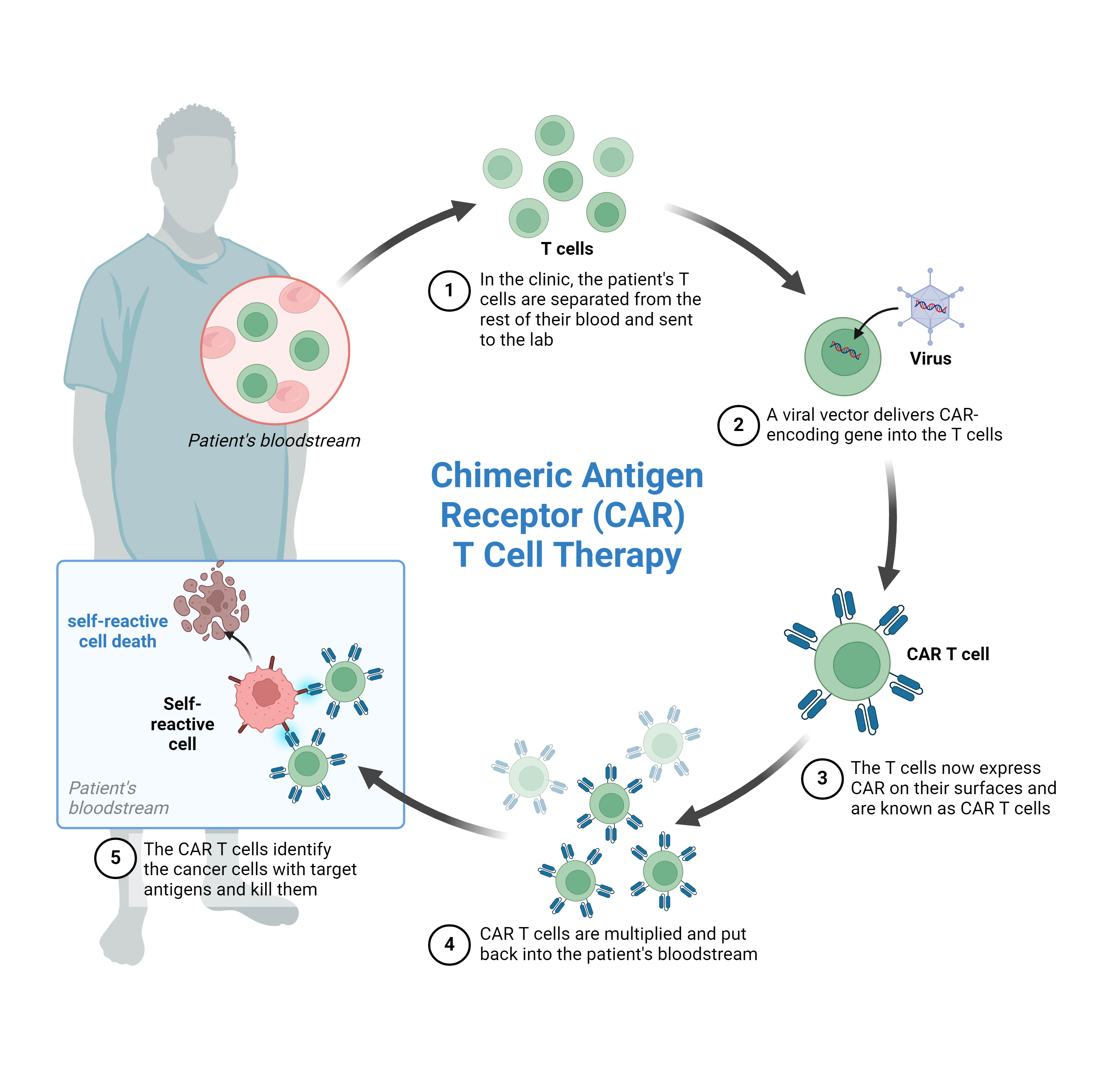 CAR-T cell manufacturing process, image extracted from Biorender.