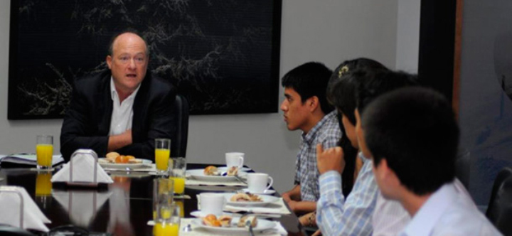 El Presidente del Consejo Directivo de la Universidad de Ingeniería & Tecnología (UTEC), Eduardo Hochschild, y Juan Incháustegui, Miembro del Consejo Directivo, sostuvieron una conversación con alumnos que cursan el primer y tercer semestre de estudios, en el marco de un desayuno que se organizó con la finalidad de generar acercamiento entre los futuros ingenieros de UTEC y sus directivos.